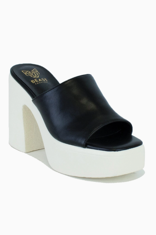 B&W Block Heel Slide Sandals