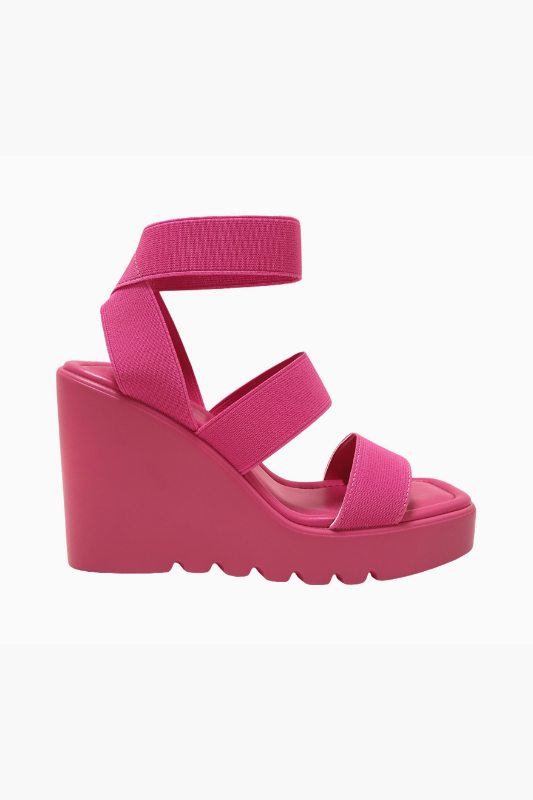 Move boldly in the Paige platform sandal. The platform sandal. designed with elasticated fabric straps. has a thick wedge heel that offers you an elevated style. With a lightly cushioned footbed. enjoy daylong comfort.